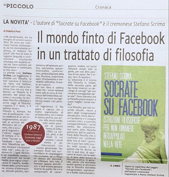 “Troppi stupidi su Facebook. Da Socrate istruzioni per l’uso” di Luca Muchetti, La Provincia di Cremona, 27 agosto 2018.