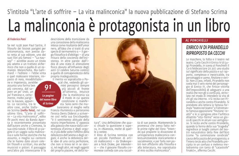 “La malinconia è protagonista in un libro” di Federico Pani, Il Piccolo di Cremona, 2 febbraio 2019.
