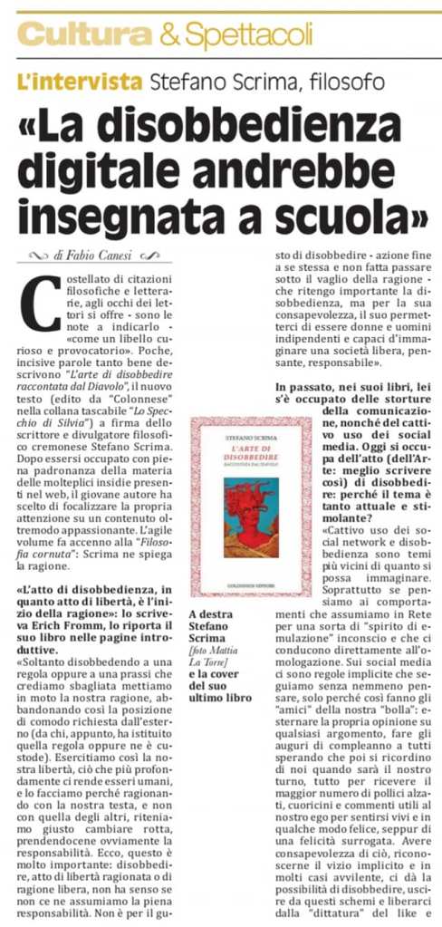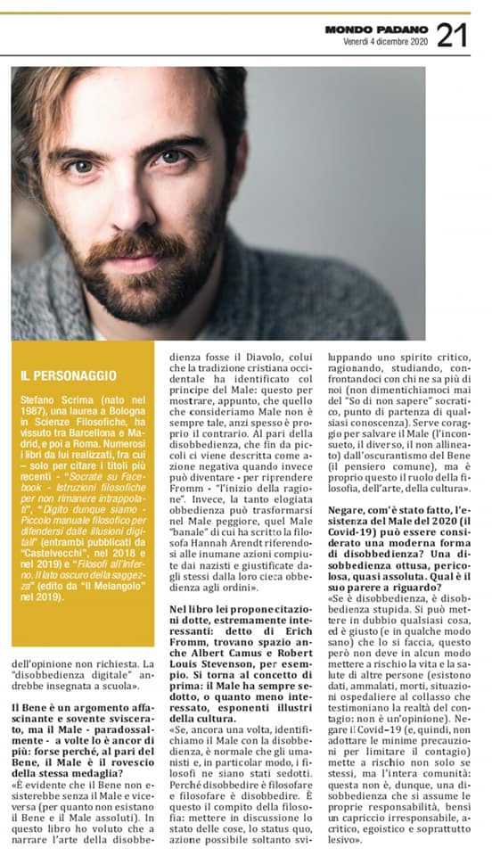 “La disobbedienza digitale andrebbe insegnata a scuola”, intervista a cura di Fabio Canesi su Mondo Padano, 4 dicembre 2020.